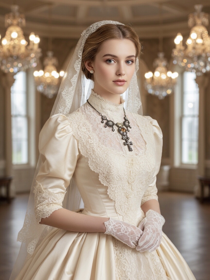 Antique 維多利亞女皇十字架古董婚紗頸鏈收藏