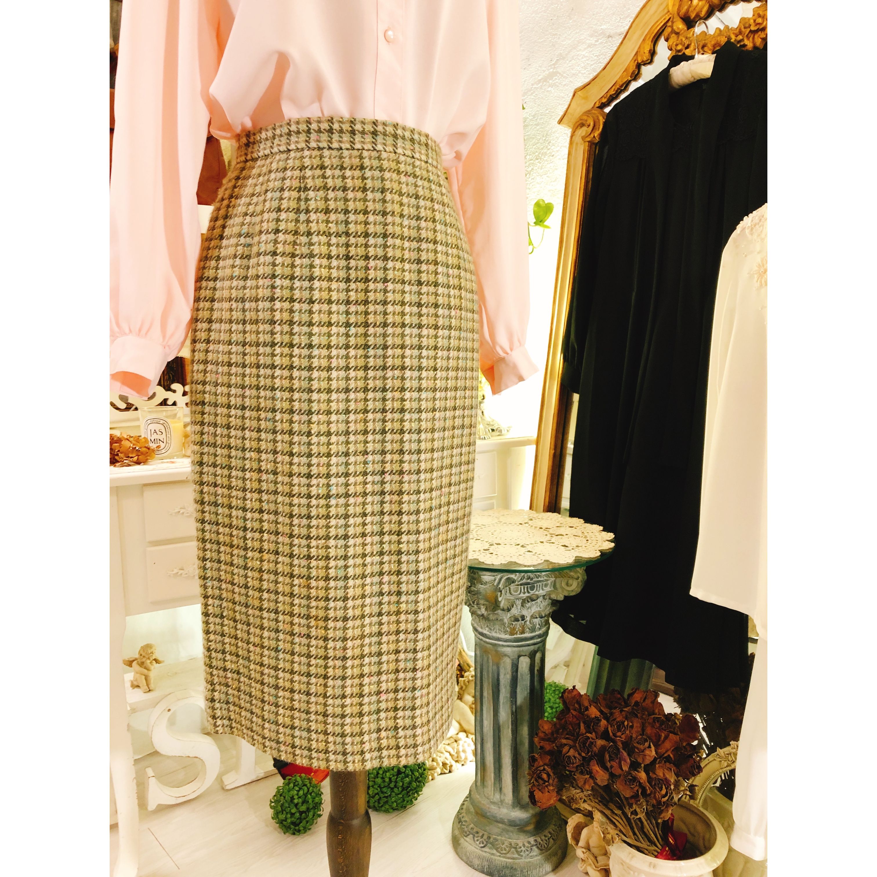 幻彩綴金公主千鳥格子 幻彩綴金公主,散發極簡千金氣質,鉛筆裙宛如舊情復燃的戀人,它不僅是五十年代優雅的象徵,更歷經各大時尚轉變,回到頂尖秀場。無論搭配高跟鞋、平底芭蕾舞鞋,鉛筆裙是時尚界焦點 腰圍:64cm 座圍:92cm 全長:59cm 質料:高級輕絨子 口袋:無 製造:日本製 💛任何問題歡迎按「查詢」聯絡本店