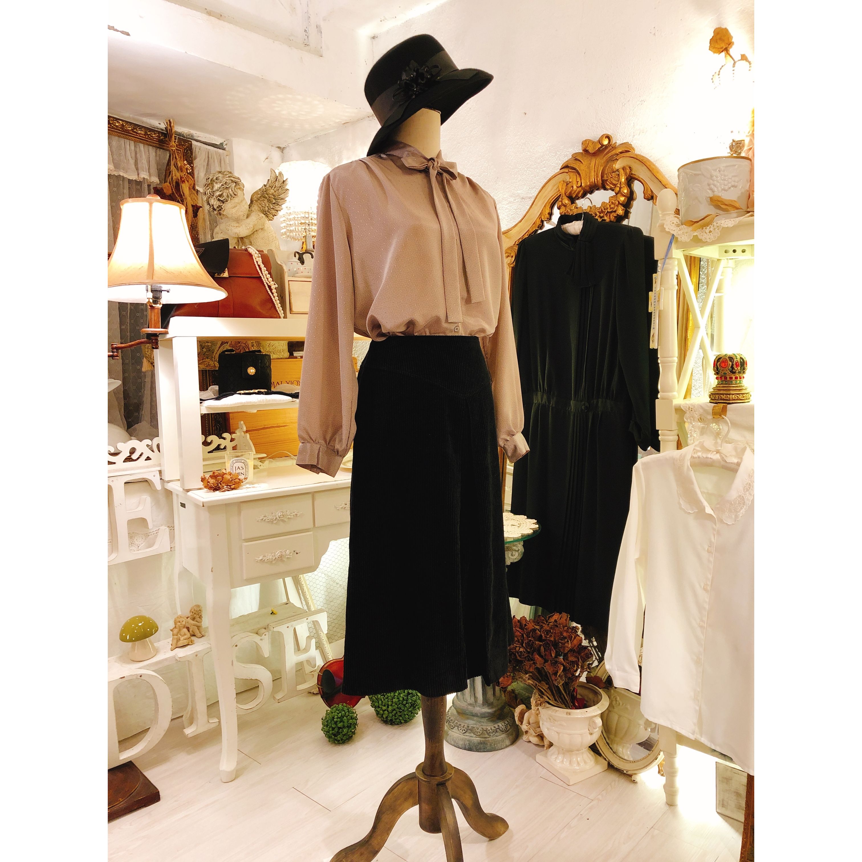淡香芋色小碎點蝴蝶領中古 肩膊: 39cm 胸圍: 106cm 腰圍: 104cm 䄂長: 54cm 全長: 63cm 質料: 雪紡 口袋: 無 肩墊: 無 特點: 絲滑布料 製造: 日本製 _______________________ 𝐕𝐢𝐧𝐭𝐚𝐠𝐞 𝐒𝐤𝐢𝐫𝐭 軟滑粗燈芯絨中古剪裁半截裙 腰圍:66cm 座圍:96cm 全長:64cm 質料:燈芯絨 口袋:無 特點;粗燈芯絨比較罕有 製造:日本製/株式會社 🤍 任何問題歡迎按「查詢」聯絡本店