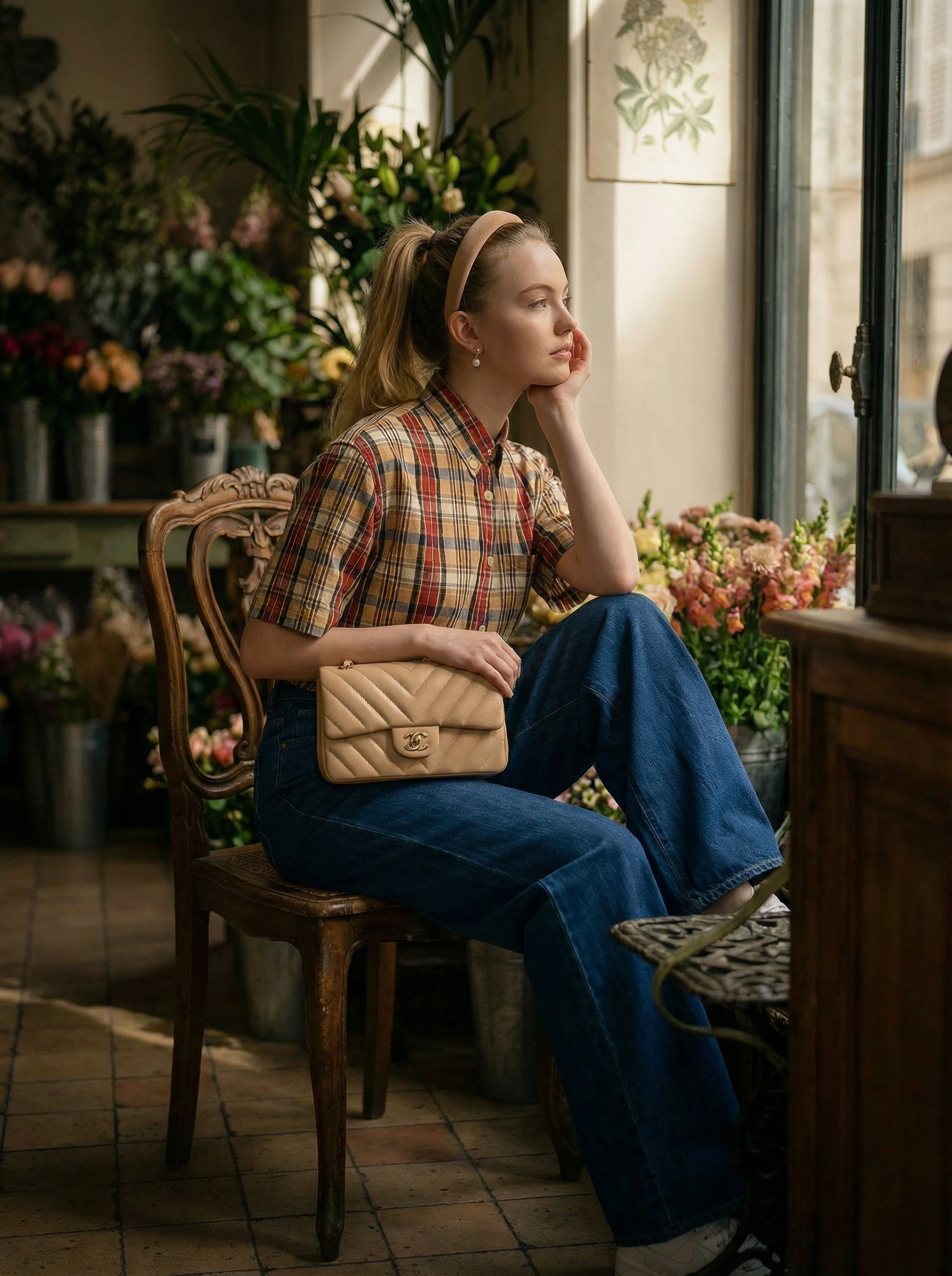 80s RENO AND DONNA 英倫格子 如果溫柔是公主的武器,那麼硬朗就是公主的盔甲,一件Boyish男孩風英倫格子創造率性、舒適帶個性的中性魅力,把硬朗披在溫柔的公主軀殼 永恆經典的英倫格子,起源於16世紀蘇格蘭,曾一度被英格蘭禁止,直到19世紀中期受到皇室青睞,成為貴族身份的符號 英倫格子集結了貴族傳統、皇室品味、街頭反叛與法式浪漫,無論是正統的紳士西裝,還是前衛的Punk造型,都能透過英倫格子完美演繹,成為歷久不衰的英倫經典。 肩膊: 48cm 胸圍: 116cm 腰圍: 116cm 䄂長: 23cm 全長: 72cm 質料: 棉混纖維 口袋: 有 肩墊: 無 製造: Hong Kong 🤍任何問題歡迎按「查詢」聯絡本店