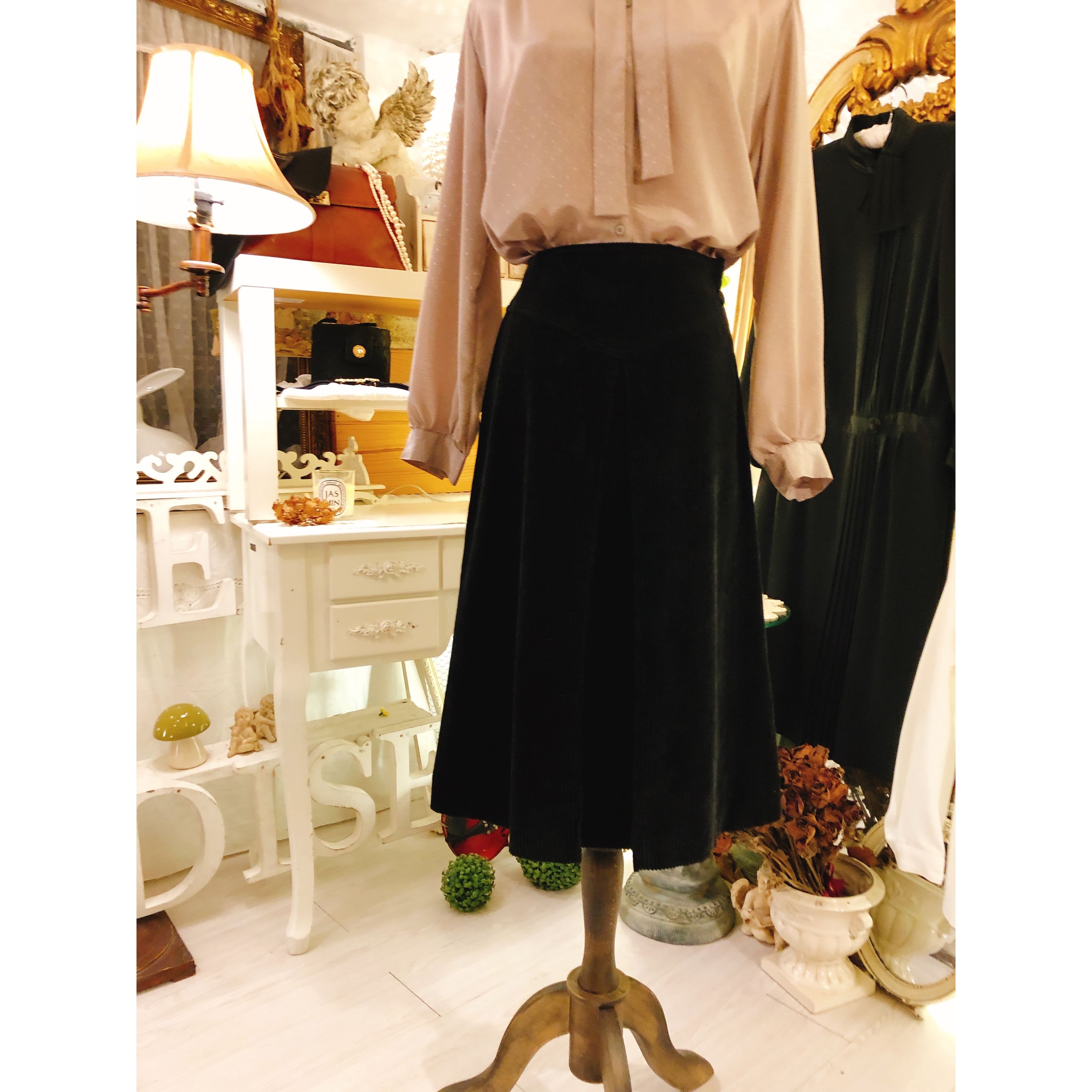 淡香芋色小碎點蝴蝶領中古 肩膊: 39cm 胸圍: 106cm 腰圍: 104cm 䄂長: 54cm 全長: 63cm 質料: 雪紡 口袋: 無 肩墊: 無 特點: 絲滑布料 製造: 日本製 _______________________ 𝐕𝐢𝐧𝐭𝐚𝐠𝐞 𝐒𝐤𝐢𝐫𝐭 軟滑粗燈芯絨中古剪裁半截裙 腰圍:66cm 座圍:96cm 全長:64cm 質料:燈芯絨 口袋:無 特點;粗燈芯絨比較罕有 製造:日本製/株式會社 🤍 任何問題歡迎按「查詢」聯絡本店