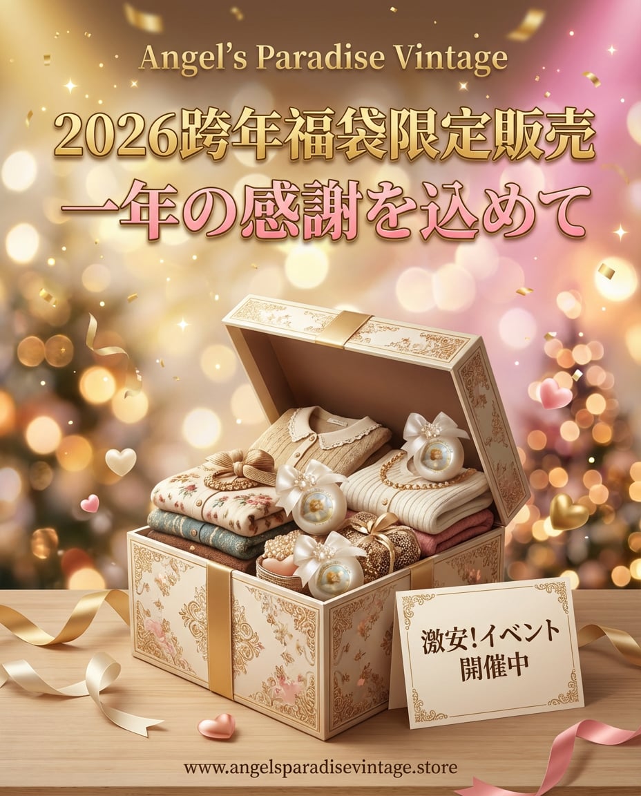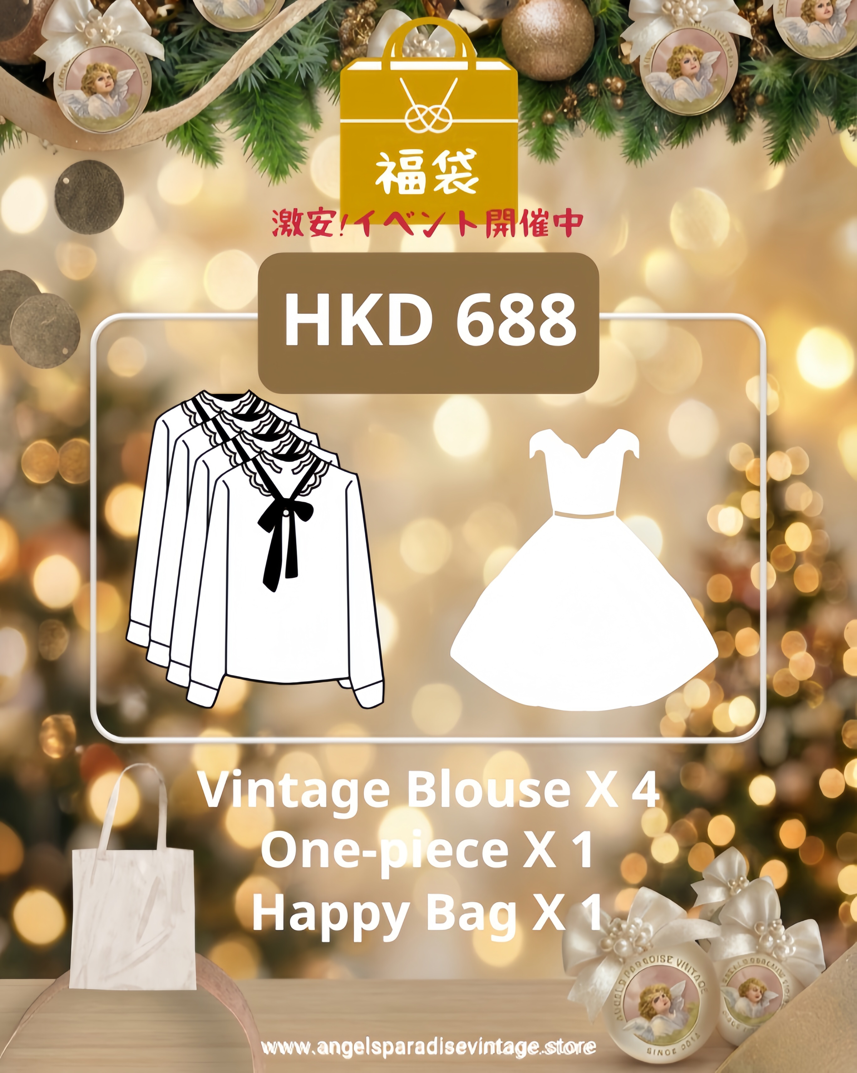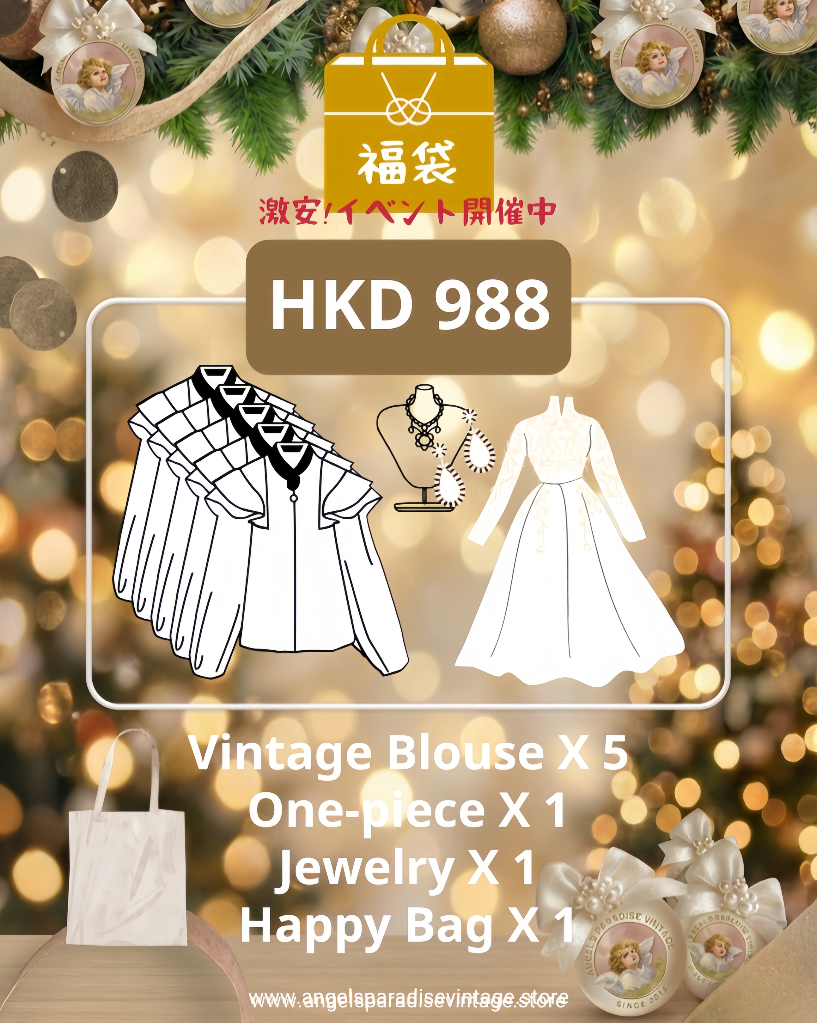 2026跨年福袋限定販売! 一年一度福袋載譽歸來! 性價比滿滿福袋來了! 迎接2026福氣滿滿! 一年の感謝を込めて Angel’s Paradise Vintage 感謝過去一年每位顧客支持 限量跨年福袋徇眾要求今年再次推出 限定販売三種福袋選擇 ◻️HKD 388 即搶 三件 Vintage 古著 再加一個環保Happy bag 原價總值870-1470 ◻️HKD 688 即搶四件Vintage 古著 再加一件Vintage 連身裙 再加一個環保Happy bag 原價總值1795-2895 ◻️HKD 988 即搶五件Vintage 古著 再加一件Vintage 連身裙 再加一件Vintage Jewelry 再加一個環保Happy bag 原價總值2448-3748 APV的福袋象徵接福! 超值福袋神秘又能給你帶來驚喜! 每個福袋貨品都完全不同! 福袋內都是本店銷售中或待上架的Vintage, 暖心貼士「官網下單備註可許願一個,會盡力實現但不保證喔~」 這物超所值!買到賺到的2026跨年福袋你怎能錯過! 新年樂趣之一就是「福袋」拆福袋的過程伴隨著興奮與期待的愉悅感,所以日本起源的福袋深受民眾愛戴,新年買個福袋試手氣、接福、迎喜悅! 福袋的名稱由來據傳是來自七福神之一的「大黑天」揹著的大袋子,在日本被視為守護財富﹑生意興隆、五穀豐收的財神。在大黑天的八寶袋裡裝有壽命、人氣、財富、權力、幸福等等,大黑天要將這些福氣分給眾人,所以稱為「福袋」。 ▫️福袋限量發售 ▫️福袋不設退換 ▫️不回覆購後無理問題 ▫️不能與其他折扣優惠同時使用 ▫️福袋順豐到付不參與運費減免活動 ▫️Vintage古物可能會有點小瑕疵 ▫️但亦是Vintage古物的可愛之處 ▫️介意者慎買或再了解Vintage古著多點再回來下單